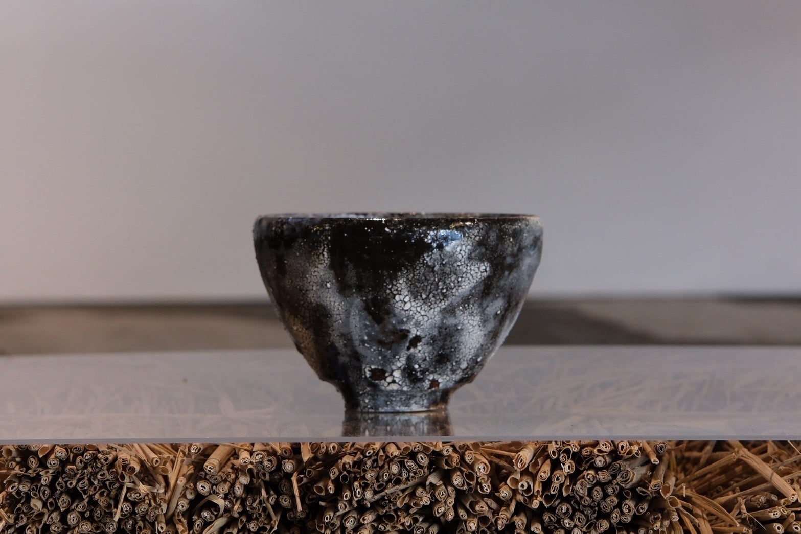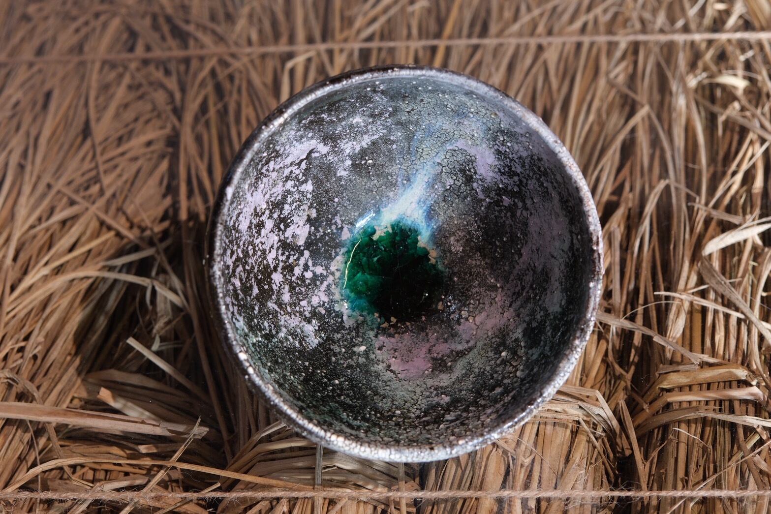 黒い釉薬の間から覗く淡い紫やコバルトブルーは銀河を想像させるかのよう