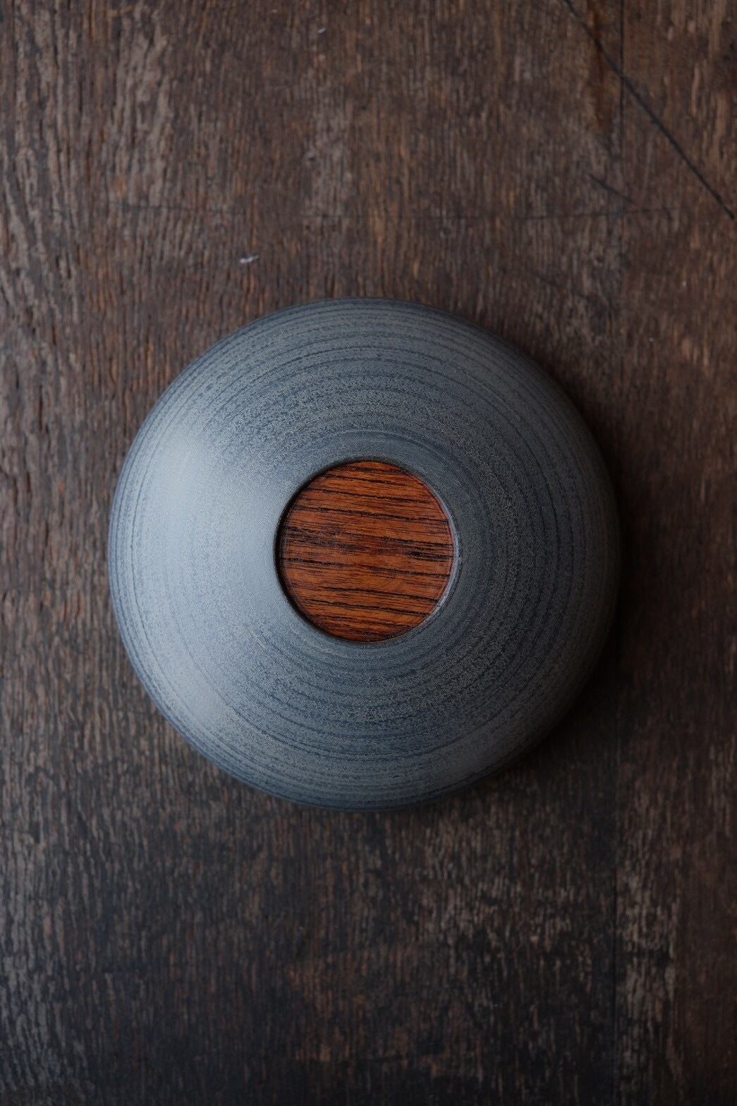 黒の漆の上から白漆を重ね、なんとも言えない柔らかな表情と色合いを醸し出す作品
