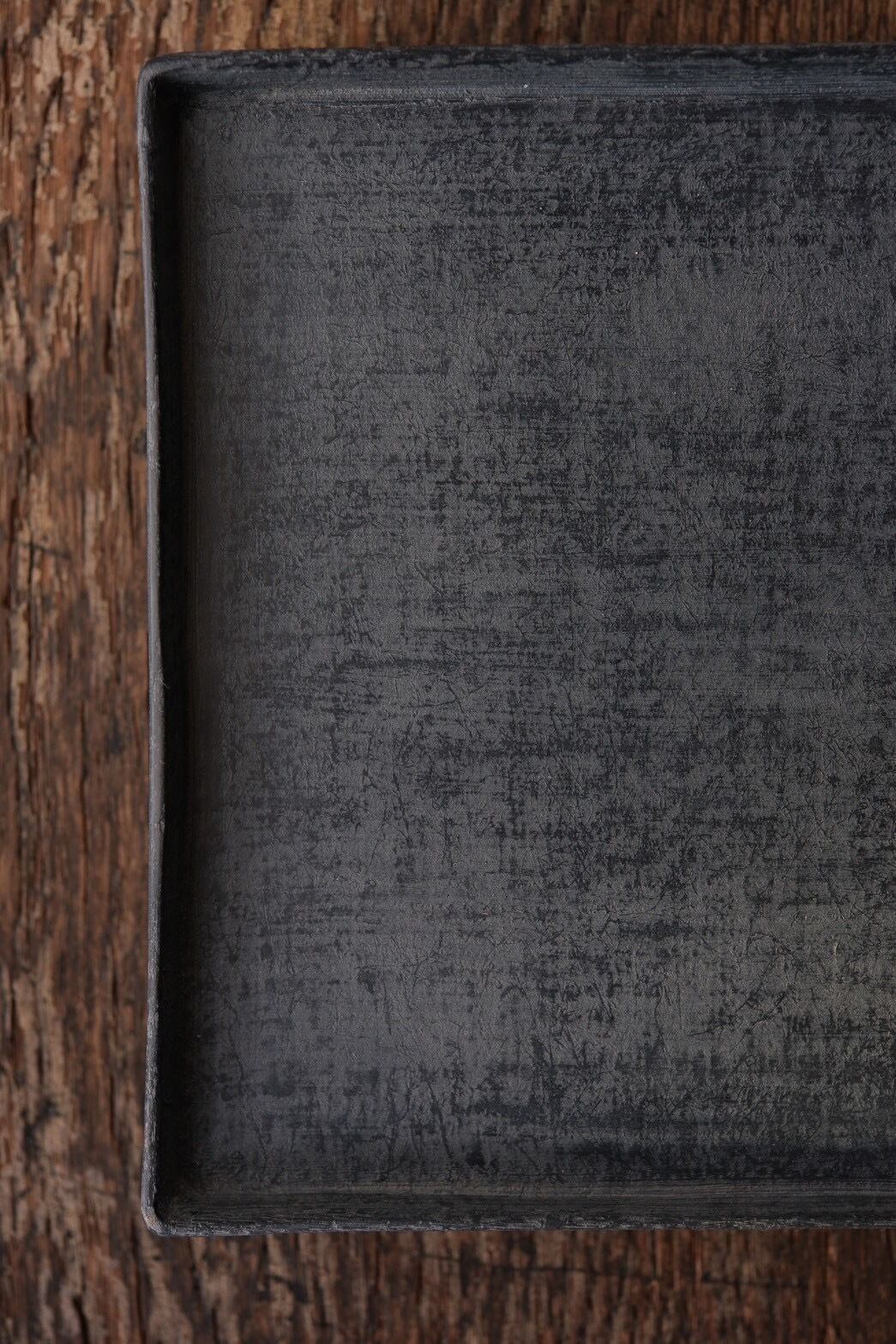 表側には地元杉原和紙を裏側には麻布を上から漆で塗り重ねて出来た、独特のテクスチャーを愉しめる作品です