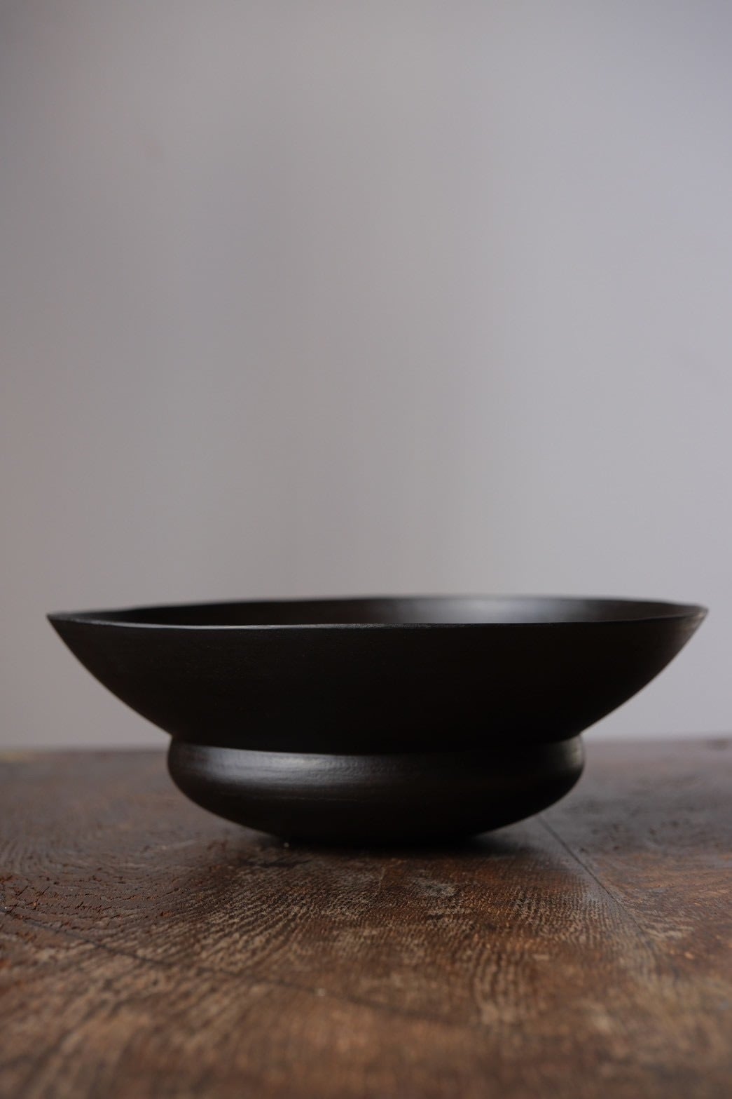 The charming balance between its softly rounded wooden base and dramatically flared rim creates a silhouette that is both bold and endearing.