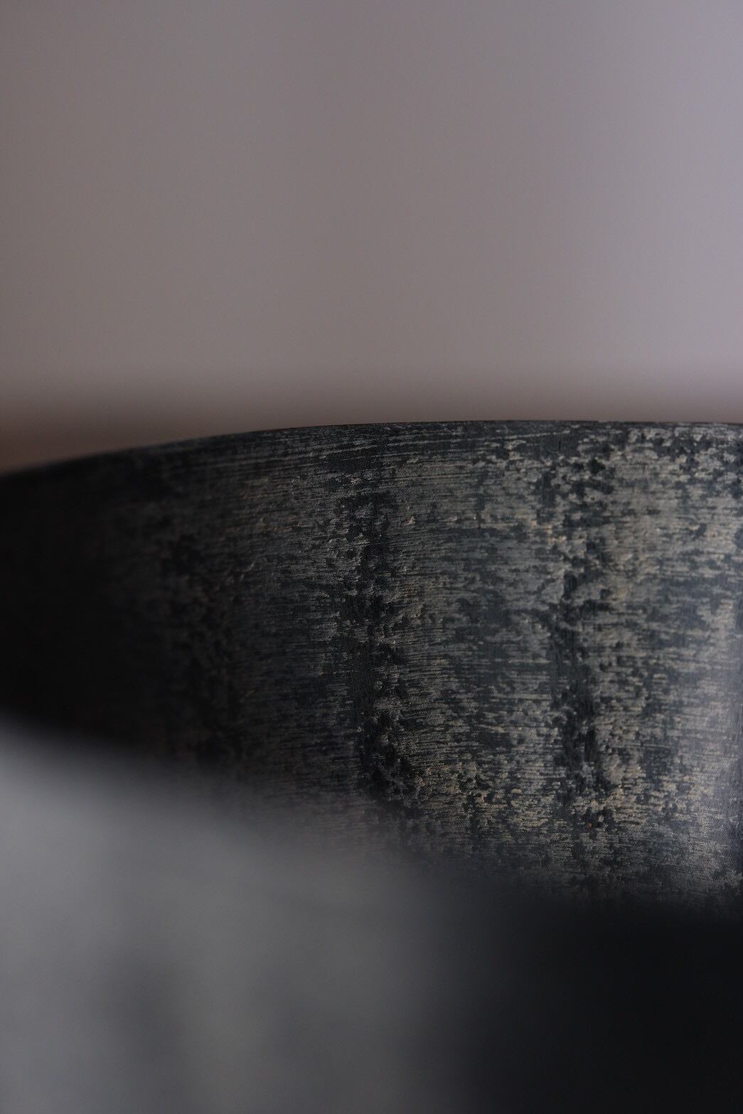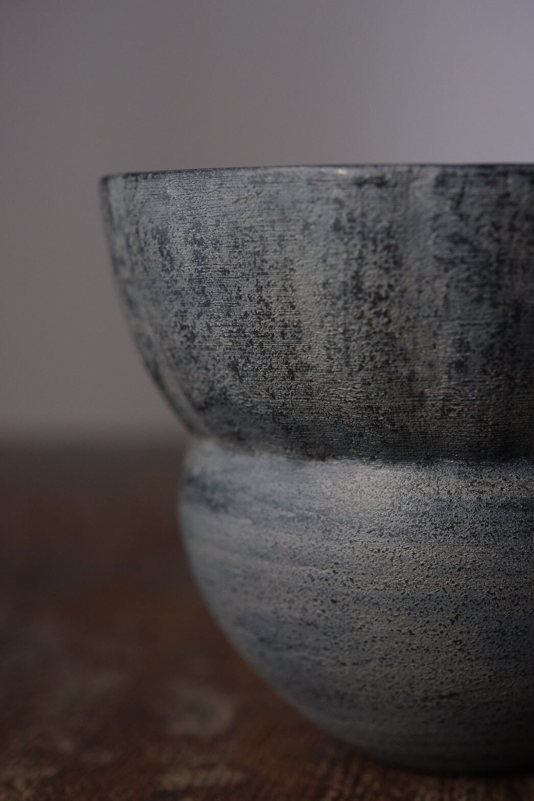 黒の漆の上から白漆を重ね、なんとも言えない柔らかな表情と色合いを醸し出す作品