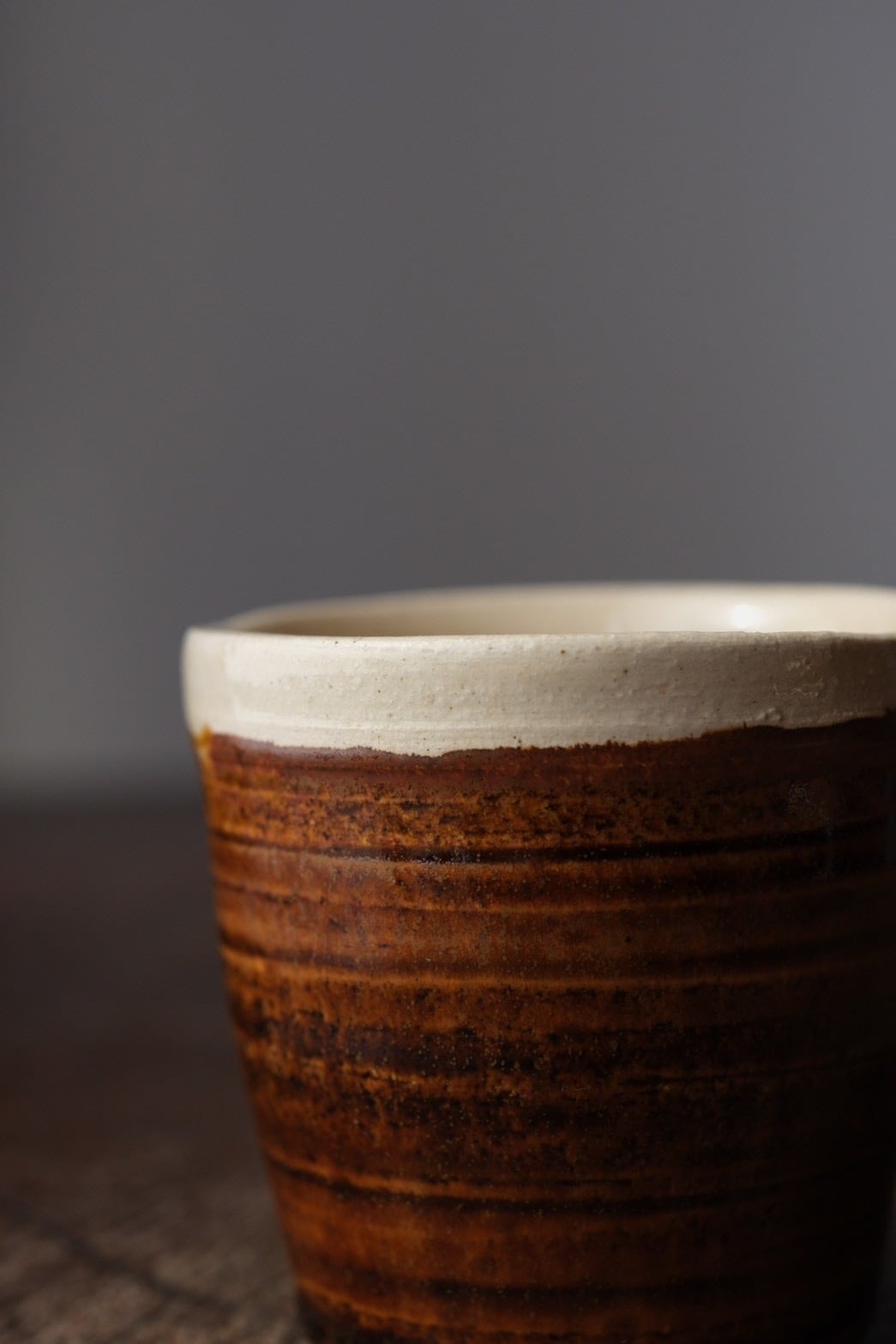 白地に飴色の釉薬のコントラストが今のもの、昔のものとも調和する